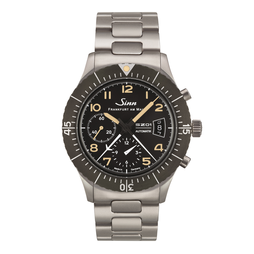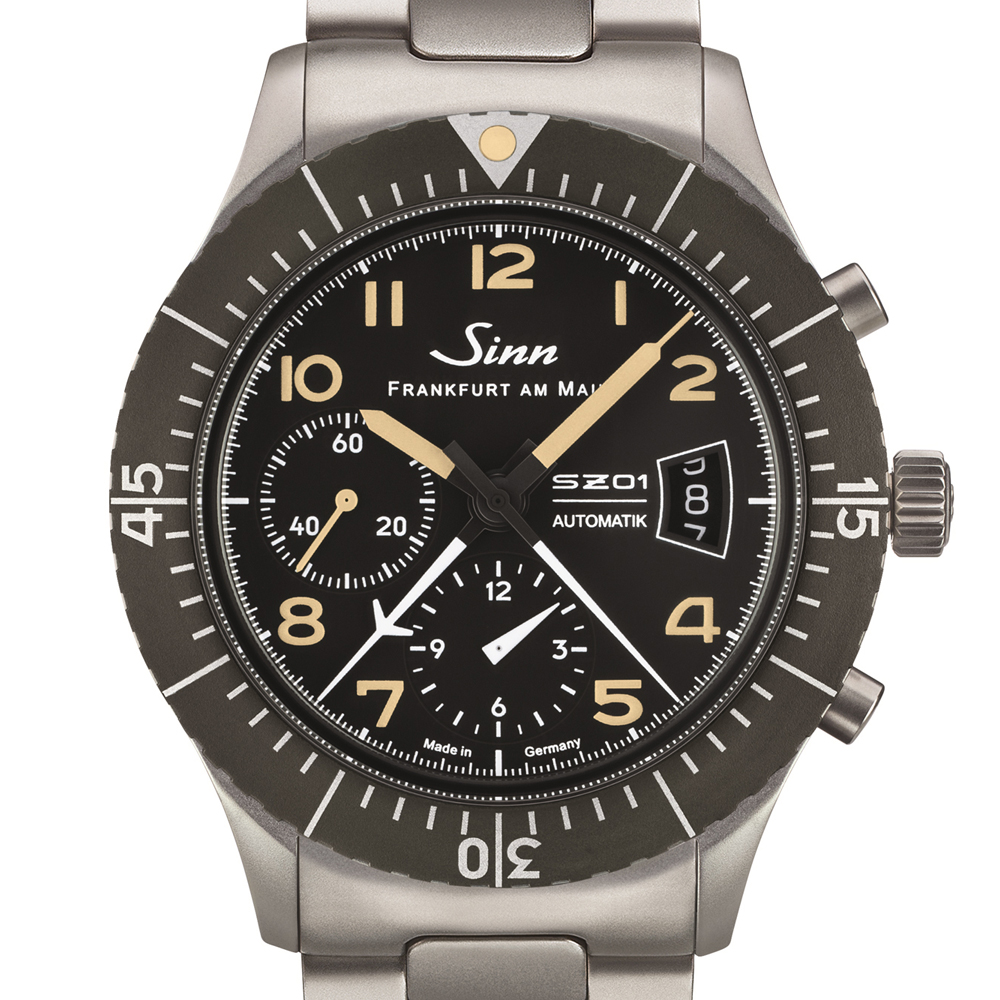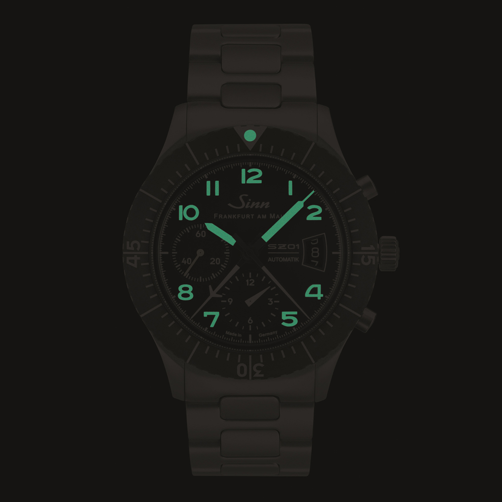 新しいモデル156.1.Eの革新的な特徴は、SINNインハウスのクロノグラフ・ムーブメントSZ01に反映されています。その利点はストップタイムをより簡単に、素早く、正確に記録でき、また、視認性の面でも明らかに優れています。