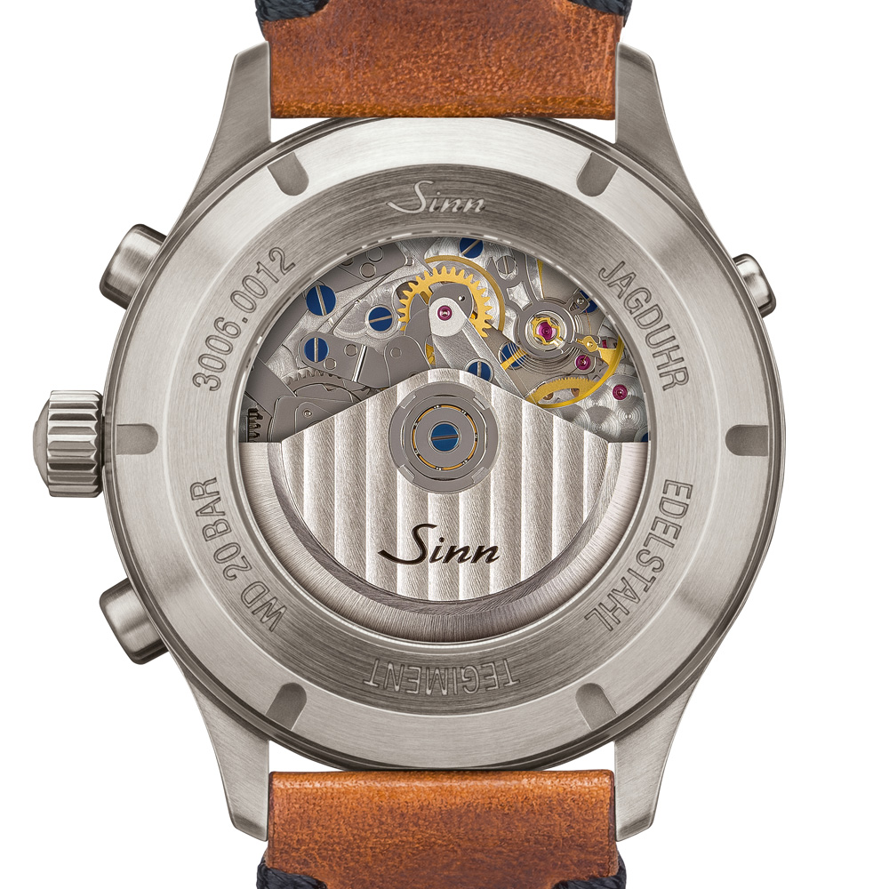 ハンティングウォッチであるモデル「3006」は、ムーンライト表示という複雑機能を持つジン社で初めての時計です。6時位置に配置されたムーンライト表示には、夜光が施された月のシンボルが付いており、暗闇でも見えるよう配慮されています。ハンターが狩りを成功させるためには、クリアでオープンな視界だけでなく、獲物に近づくときに適度な明るさを必要としますが、人工的な光源の使用はドイツ連邦狩猟法第5条19項 第5節aで禁じられています。そのため、捕獲が承認されている動物を夜間に狩るためには、十分な月明かりが必要となります。これが、ムーンライト表示機能の開発に着手した背景にある事実なのです。ハンティングウォッチ「3006」のムーンライト表示は、獲物を捕らえるための月明かりがいつ最高潮に達するのかを表示してくれます。