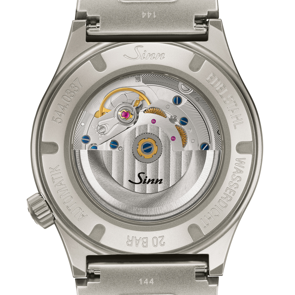 このモデルには、ほこりや湿気の侵入を防ぐ確かな保護機構としてSINN独自のD3システムを採用しています。手作業で配置したハイブリッド・セラミック製の夜光インデックスにより、優れた視認性を確保。