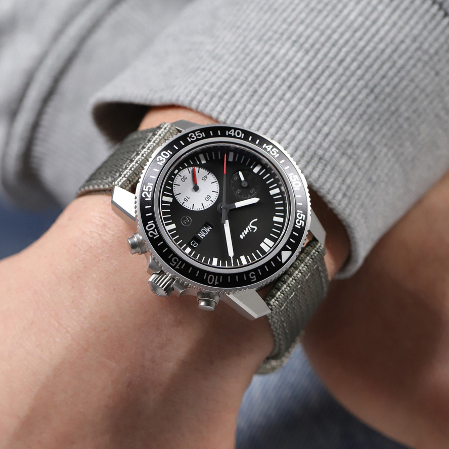 ダイビングに必要な堅牢性、機能性、そして高い精度の信頼性を持つ613 Stは、EZMシリーズとは異なり、リューズとプッシュボタンを右側に配置した実用的なダイビングクロノグラフです。