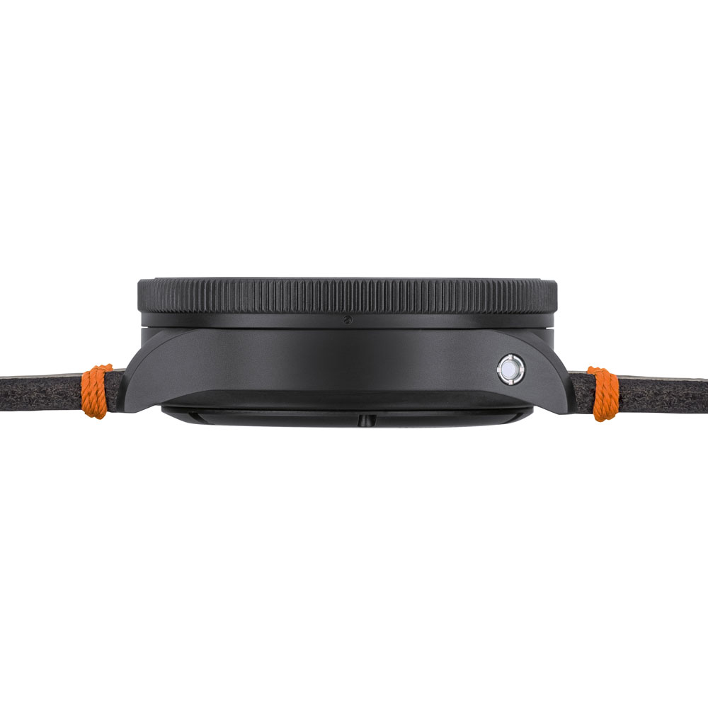 モデル717は、1970年代後半にドイツ空軍のトルネード計画のためにジンが設計したコックピットクロック「Nabo 17 ZM」からインスピレーションを受けて製作された、コックピットリストウォッチです。現在も軍の多機能戦闘機トルネードに採用されているNabo 17 ZMの特徴は、クロノグラフのストップウォッチ表示がセンターに配置されており、秒と分を示すオレンジ色の針が見やすいことでした。
