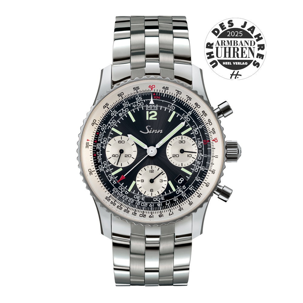 ジンが完全に再設計した新しい903シリーズの「903.St.II」は、サンレイ仕上げのブラックダイヤルにシルバー仕上げのカウンターとインナーベゼルを備えたシリーズ標準モデルです。