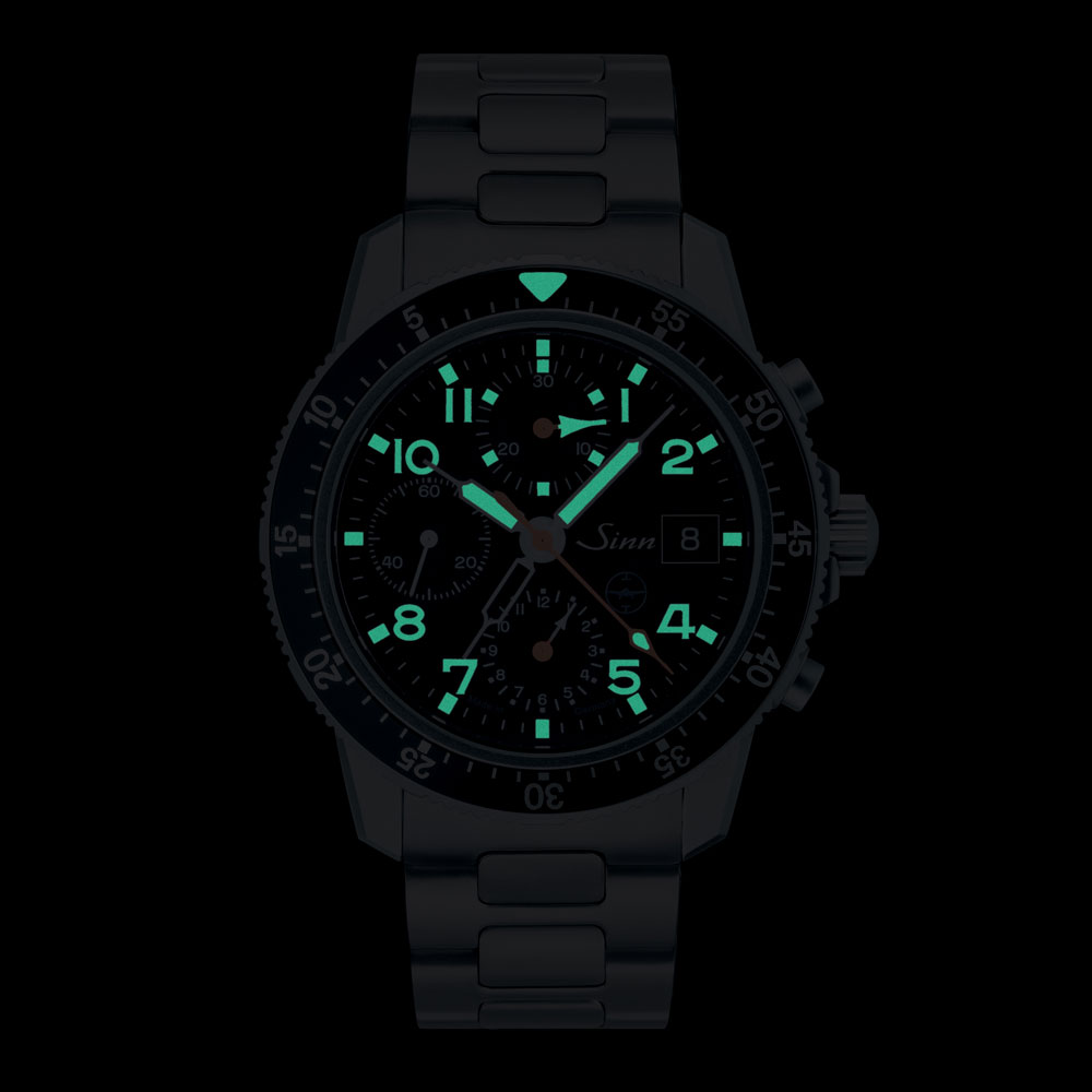 103.TI.UTC.TESTAFは、アーヘン応用科学大学による“パイロットウォッチ標準規格(TESTAF)”に基づいてテストされ認定されたモデルです。認定書が発行され、その証にダイヤルにTESTAFのロゴマークが印されます。この認定書は、有視界計器飛行方式(VFRおよびIFR)において、飛行中に時間測定のための必要条件を満たしていること、パイロットウォッチとしてプロユースに適していることを証明しています。機能的な信頼性を高め風防の曇りを防止するArドライテクノロジー、-45℃から+80℃までの気温での精度を保証するジン特殊オイルを使用したモデルです。クロノグラフに加え12時間式の第二時間帯表示も備えています。