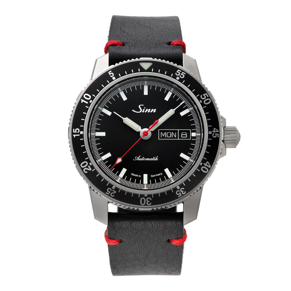 104.ST.SA.I.RS.Mは、ジンの基本精神に基づいて製作のパイロットウォッチ特別限定品で、時刻、日付や曜日、秒の最適な視認性を確保したモデルです。分表示を刻んだパイロットベゼルは両方向回転式で、通常のスナップ式とは異なるジン独自の確実な装着方法で取り付けられているため、不意の衝撃でも外れることはありません。ベゼルの12時位置には三角形の夜光マークも付いた伝統的なデザインです。時計ケースはマット仕上げ。サファイアクリスタルの風防と裏蓋もサファイアクリスタル製で、ムーブメントの繊細で複雑な動きを見ることができます。20気圧防水と減圧耐性も備えています。
