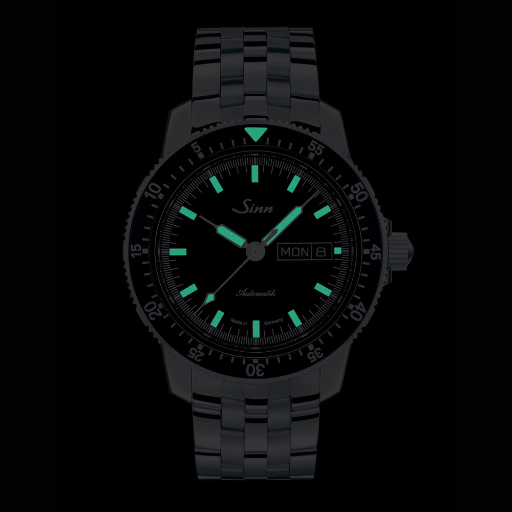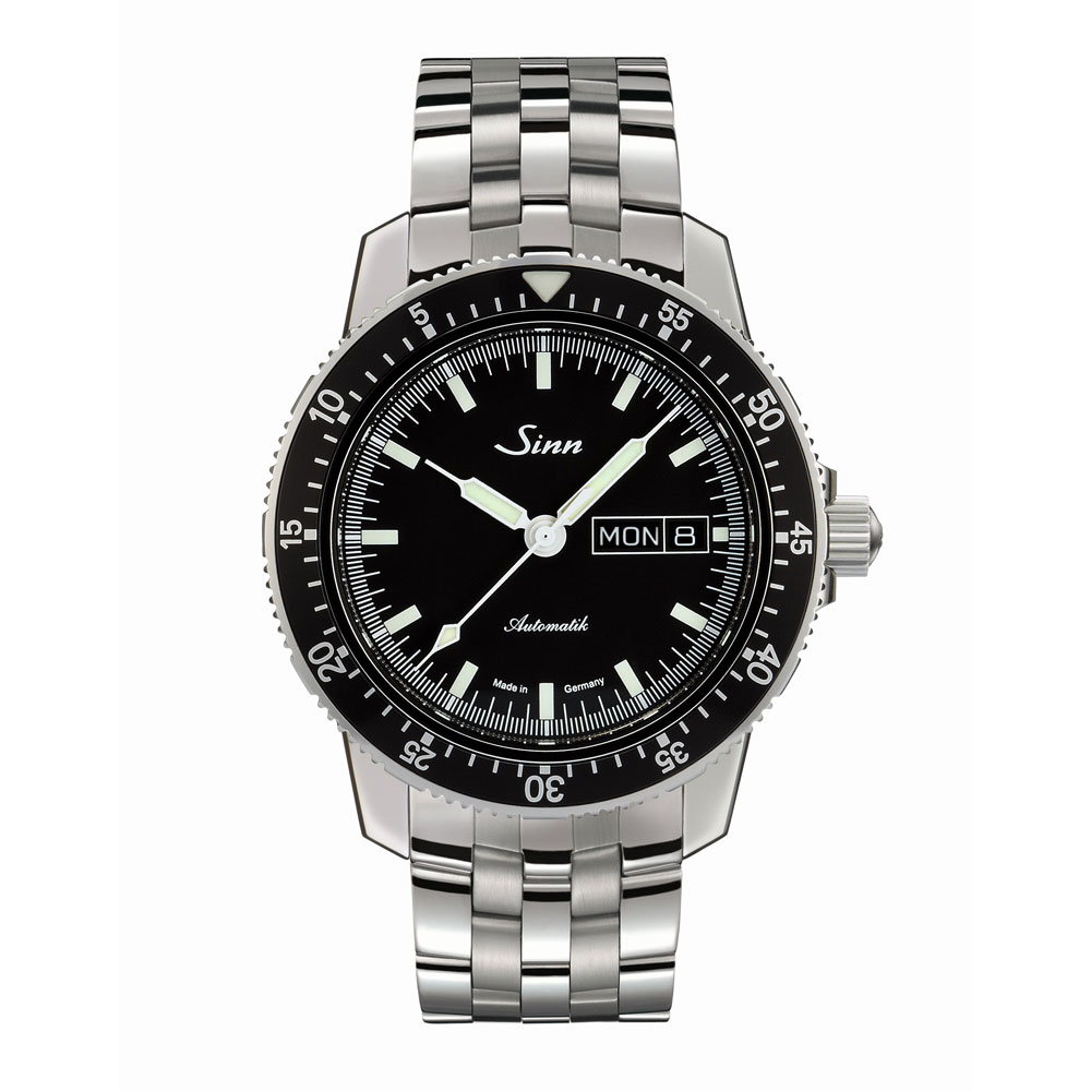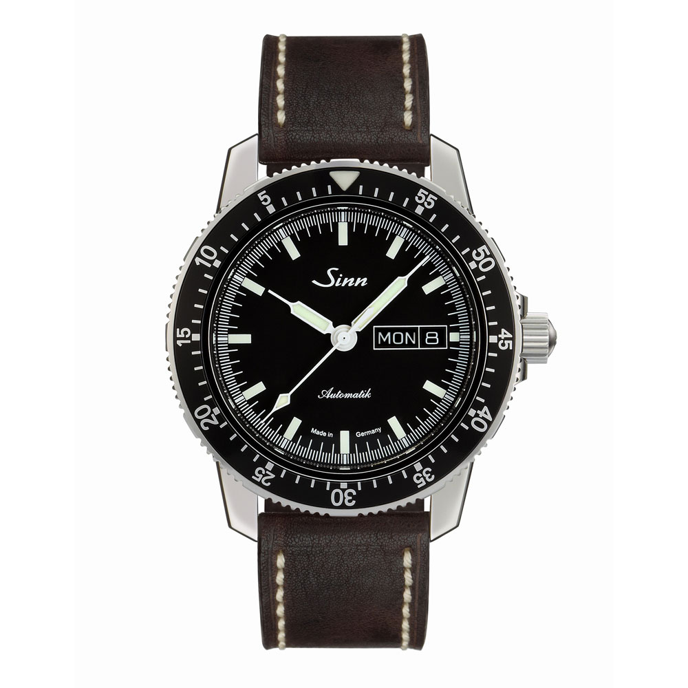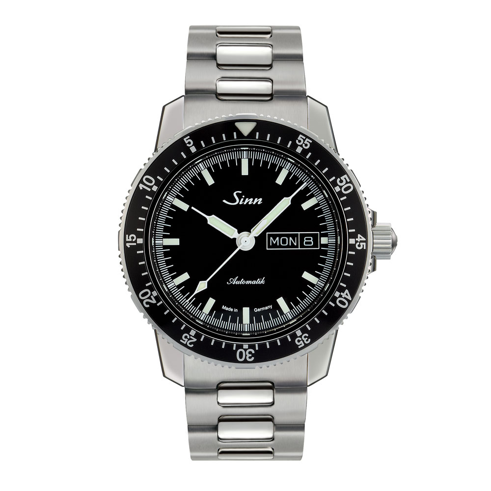 104.ST.SAは、ジンの基本精神に基づいて製作されたパイロットウォッチで、時刻、日付や曜日、秒の最適な視認性を確保した設計です。分表示を刻んだパイロットベゼルは両方向回転式で、通常のスナップ式とは異なるジン独自の確実な装着方法で取り付けられているため、不意の衝撃でも外れることはありません。ベゼルの12時位置には三角形の夜光マークも付いた伝統的なデザインです。時計ケースはポリッシュ仕上げ。サファイアクリスタルの風防と裏蓋もサファイアクリスタル製で、ムーブメントの繊細で複雑な動きを見ることができます。20気圧防水と減圧耐性も備えたモデルです。