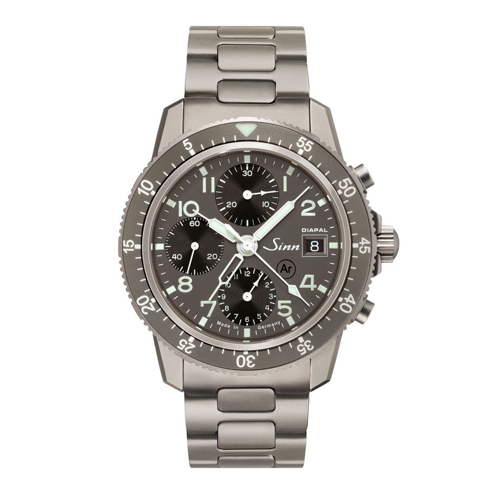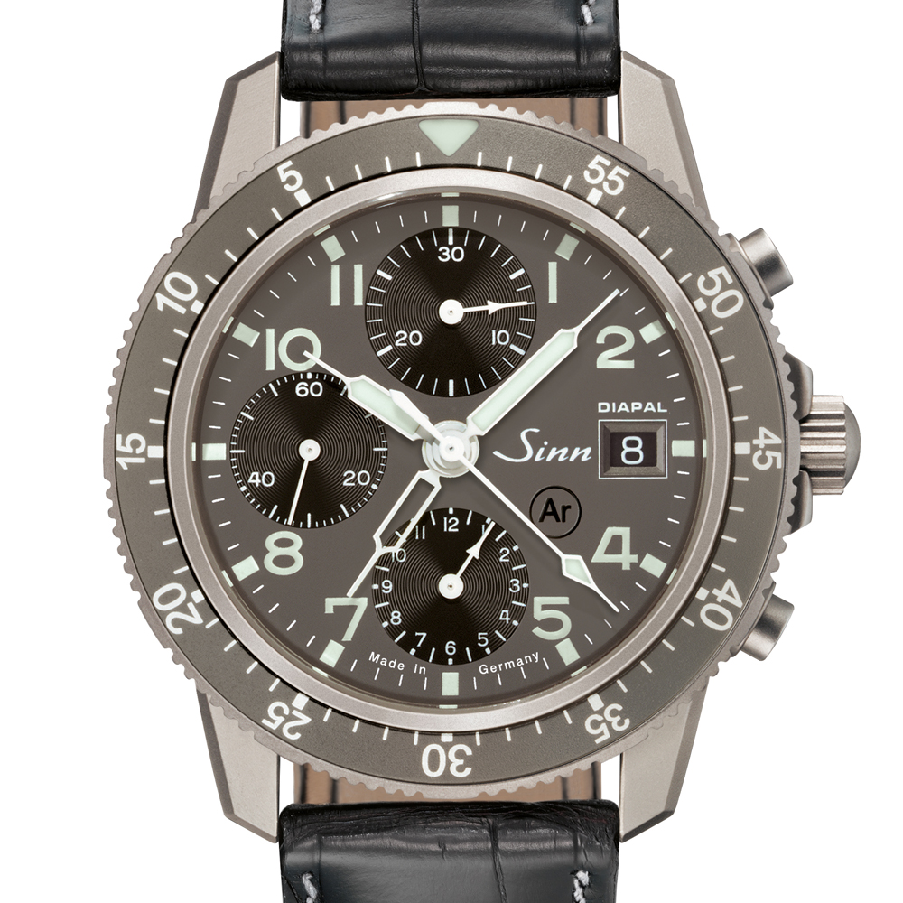「103.TI.DIAPAL」は、最新技術と機能的なデザインが融合した真のクラシックなツールウオッチです。航空機のコックピットクロックが起源であるジンが生み出すパイロットクロノグラフには、プロフェッショナルたちの厳しい要求に応える経験が生かされています。このモデルも当時から続く伝統的なデザインを踏襲しながらも、特筆すべき技術的特徴として分刻みで回転する特殊結合方式により固定されたパイロットベゼルや、時計の心臓部である脱進機のガンギ車を特別な素材にすることで潤滑オイルがなくても摩耗を減少することができる「ディアパル」、「Arドライテクノロジー」を搭載しています。マット仕上げのピュアチタン製ケースが快適な装着感を保証します。