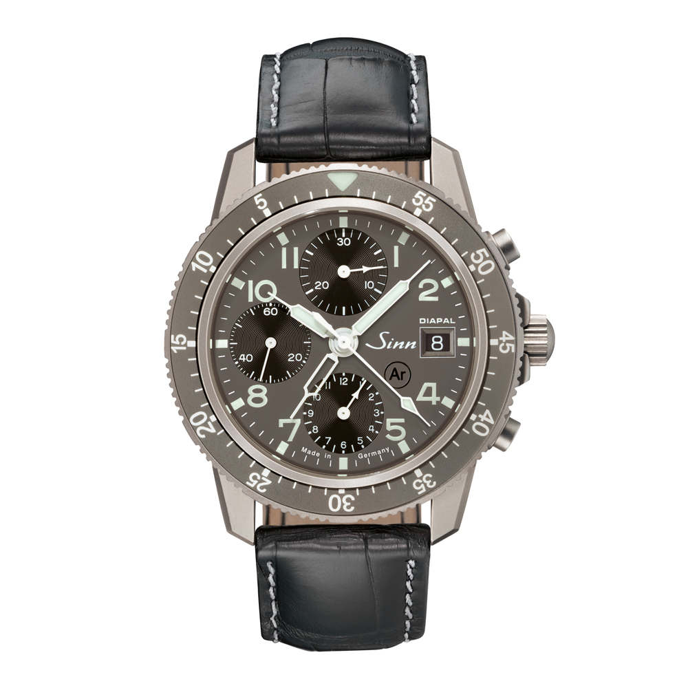 「103.TI.DIAPAL」は、最新技術と機能的なデザインが融合した真のクラシックなツールウオッチです。航空機のコックピットクロックが起源であるジンが生み出すパイロットクロノグラフには、プロフェッショナルたちの厳しい要求に応える経験が生かされています。このモデルも当時から続く伝統的なデザインを踏襲しながらも、特筆すべき技術的特徴として分刻みで回転する特殊結合方式により固定されたパイロットベゼルや、時計の心臓部である脱進機のガンギ車を特別な素材にすることで潤滑オイルがなくても摩耗を減少することができる「ディアパル」、「Arドライテクノロジー」を搭載しています。マット仕上げのピュアチタン製ケースが快適な装着感を保証します。