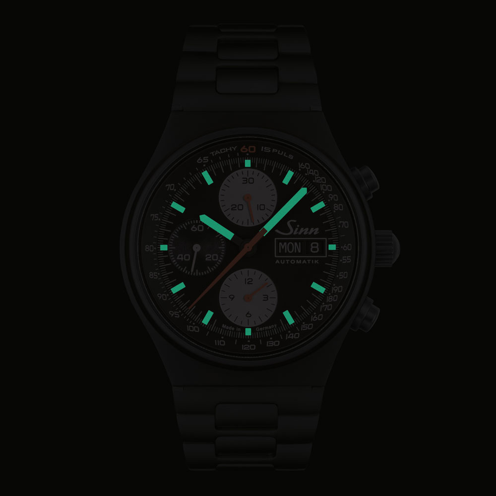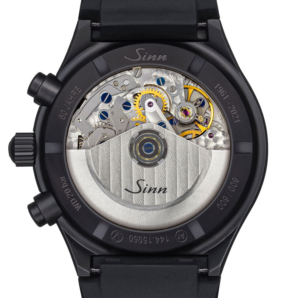 ブランド創立60年を記念して600本の特別限定モデルとして発表したのが144.ST.S.JUB.IIです。1974年にその最初のモデルが発売された144シリーズは、ジンのコレクション中で最も伝統的な時計の一つです。初期モデルは、ブラッククローム仕上げのケースにミネラルガラスを使用し、5気圧までの防水性能しか備えていませんでしたが、2021年の60周年モデルは除湿機構のArドライテクノロジーやケースのブラック・ハード・コーティングといったジン・テクノロジーの採用や、20気圧防水と負圧耐性、無反射サファイアクリスタルを備え、耐久性がアップグレードされています。