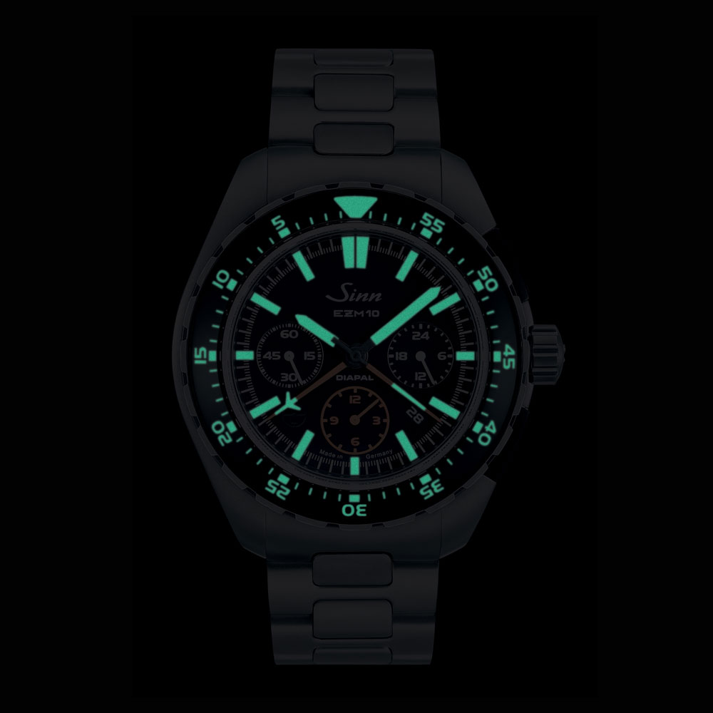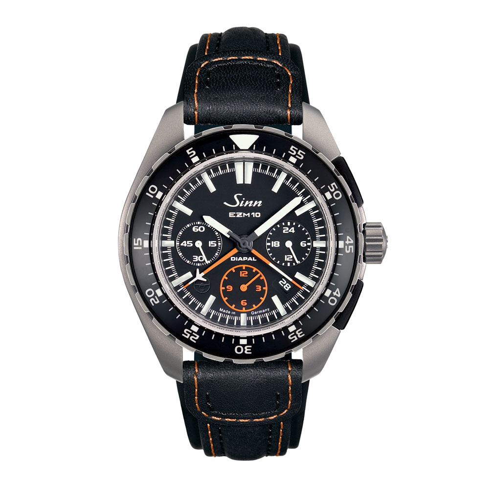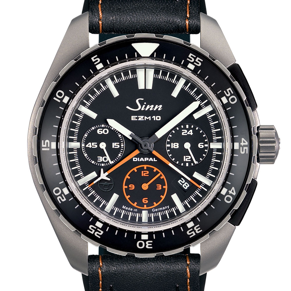 EZM10.TESTAFは、アーヘン応用科学大学による“パイロットウォッチ標準規格(TESTAF)”に基づいてテストされ認定された最初のモデルです。これはEZM10.TESTAFが有視界計器飛行方式における飛行中、時間計測機器としてすべての条件を満たしていることが保証されています。これは認定書とダイヤル上のTESTAFマークによって明らかです。このモデルには、時間計測のしやすさを考慮し、60分積算計をセンター配置でデザインしたムーブメントSZ01を搭載しています。通常の30分積算計に比べ60分が針の一回転で計測できること、スモールダイヤルではなく時計のメインダイヤルの目盛で読み取るため見やすいという2つの利点があります。クロノグラフ機能のディスプレイ(クロノグラフ秒針、60分積算計)は、夜光処理により暗所でも視認性が確保されているので、EZM10.TESTAFは有視界計器飛行方式においてキーとなる条件を満たしていると言えるのです。さらにクロノグラフに関連したオレンジ色の針とインデックス部分には蛍光処理が施されているので、プロのパイロットがしばしば遭遇するコックピット内のブラックライトの中でもはっきりと読み取ることができます。EZM10.TESTAFを価値あるパイロットウォッチにしているのは、優れた視認性だけではありません。DIAPALやArドライテクノロジー、テギメント・テクノロジー、熱抵抗テクノロジー、特殊結合方式の回転ベゼルといったお馴染みのジン・テクノロジーも満載しています。EZM10.TESTAFは、日常使用にも適した高いパフォーマンスを誇るジン最強のパイロットウォッチです。
