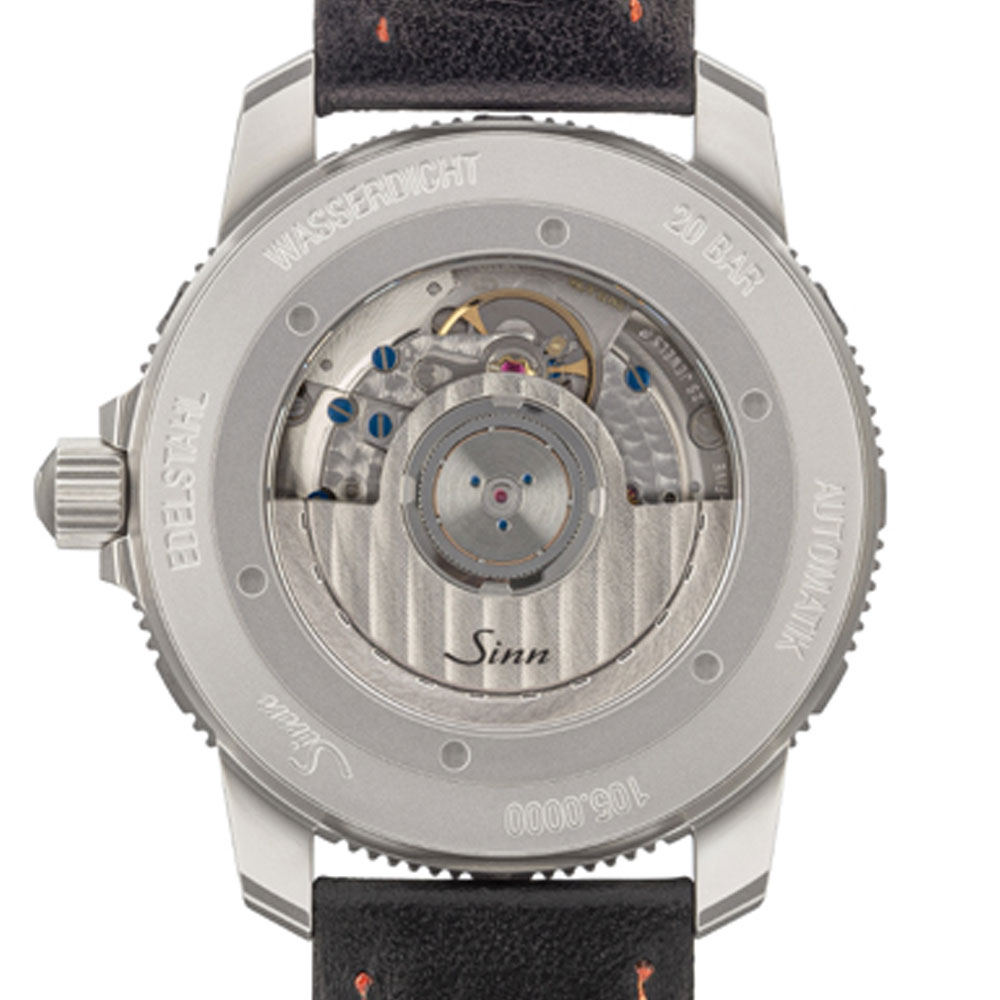 このモデルにはオレンジ色のアクセントが効いたマットブラックダイヤルのモデル「105.ST.SA.UTC」もあります。サファイアクリスタル製のシースルーバックから、機械式ムーブメントの動きを細部まで観察することができます。