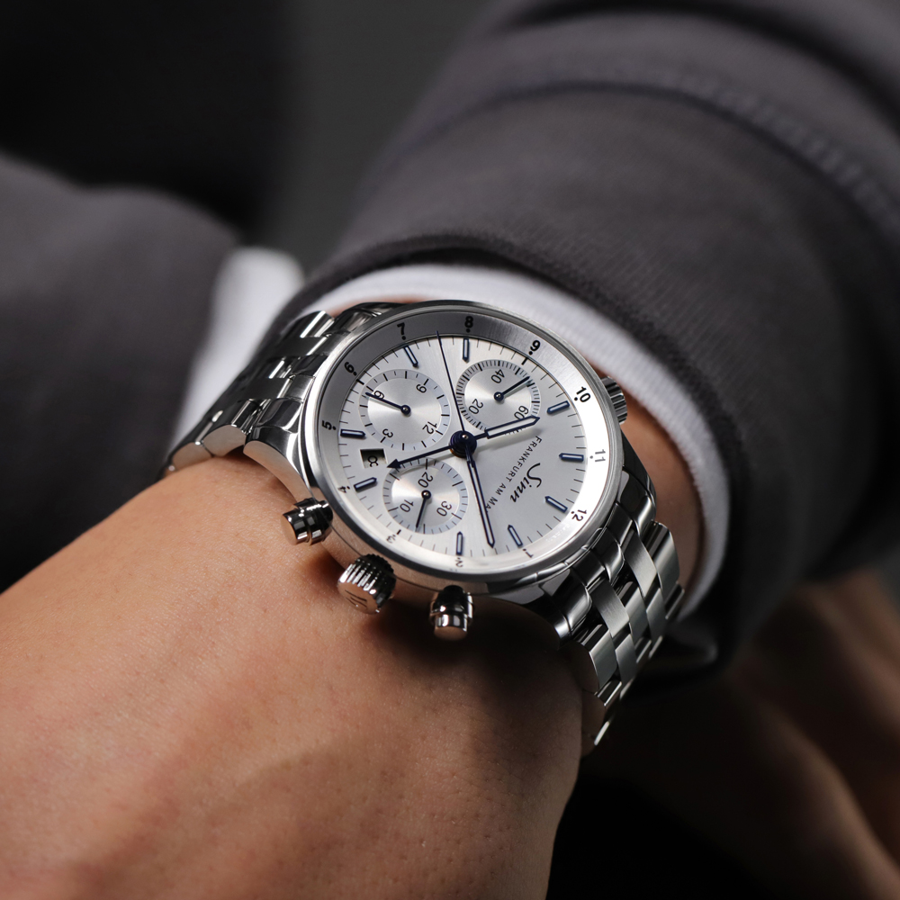 フランクフルト経済振興協会の要請を受けて開発されたフランクフルト・ファイナンシャルシリーズの誕生から25年を記念して、250本の限定で製作された3つの時間帯表示を備えたクロノグラフです。シルバープレートのダイヤルや、時分針およびアプライド・インデックスに施した光沢のあるブルーはこのシリーズでは初めての試みで、全体的な外観を印象的で新鮮なものにしています。直径38.5mmのケースに収められたムーブメントは複雑機構であるコラムホイール・クロノグラフの芸術的メカニズムを備え、ローターにはフランクフルトの摩天楼や限定番号を刻印しています。