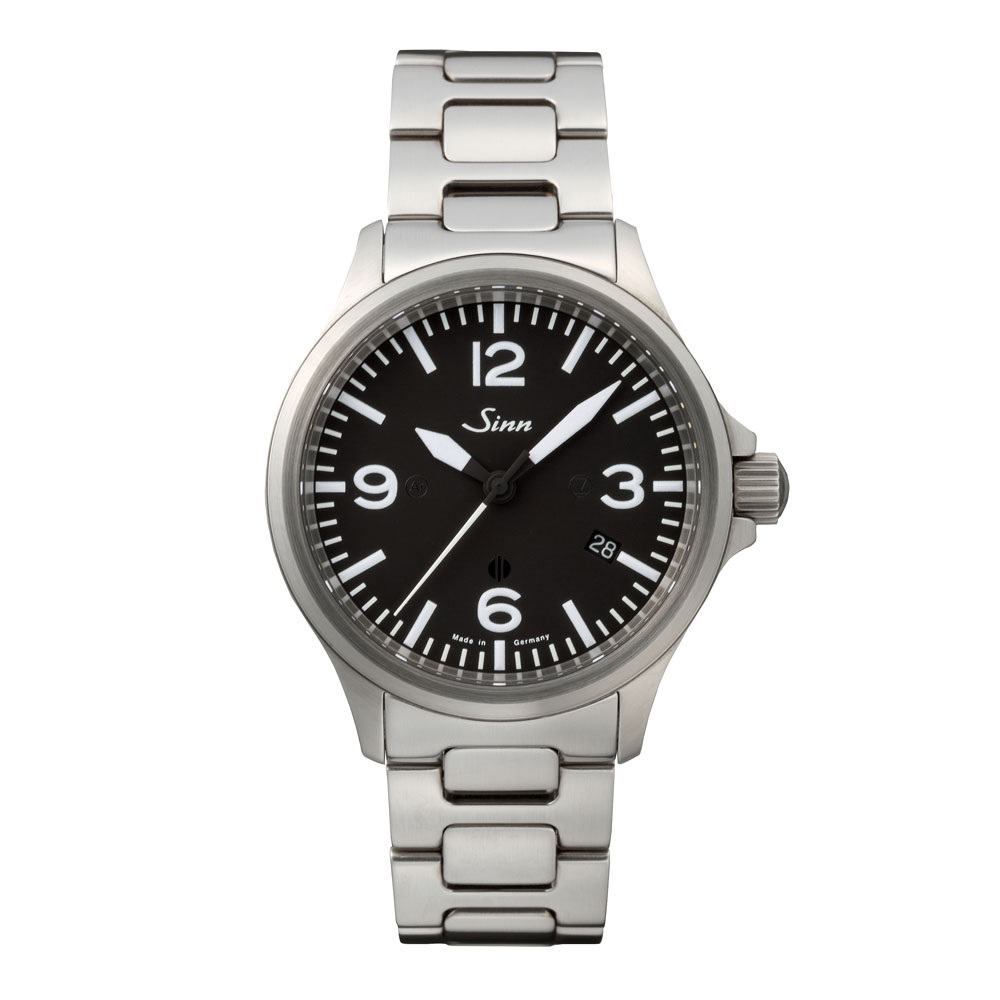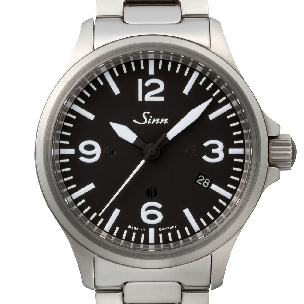 ジンの856シリーズはコックピット内のパイロットにとって最も重要な極限状態でのダイヤルの視認性を確保するため、視認性の構成要素となっている3・6・9・12のインデックスを強調したコックピットクロックのデザインを映したシンプルなシリーズで、ジン独自のテクノロジーを満載した信頼性の高いタフネスウォッチです。この日本限定で誕生した856.B.STNは、レギュラーモデルのサンドマット仕上げのケースを、デイリーユースを考慮してサテン仕上げに変更したモデルです。インデックスのデザインは従来モデルと同じですが、856.B.STNのダイヤルにはこのモデルに搭載するすべてのジン・テクノロジーのマーク —— 3時位置にテギメント、6時位置にマグネチック・フィールド・プロテクション、9時位置にArドライテクノロジーのマークが印されています。時・分針とインデックスの夜光処理や両面無反射サファイアクリスタルも従来モデルと同様です。