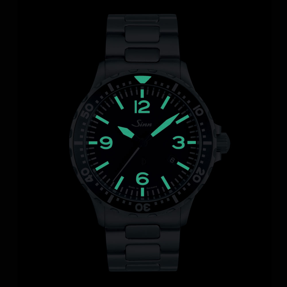 857.Bは、2011年新たに生まれた856.Bにジン独自の特殊結合方式のパイロットベゼルを備えたモデルです。この結合方式は、通常のはめ込み式ではなく、ジン社独自の特殊技法でケースにセットされているため、絶対に外れることはありません。新設計により装着は確実でありながら、修理にあたっては分解が容易にできるようになっています。