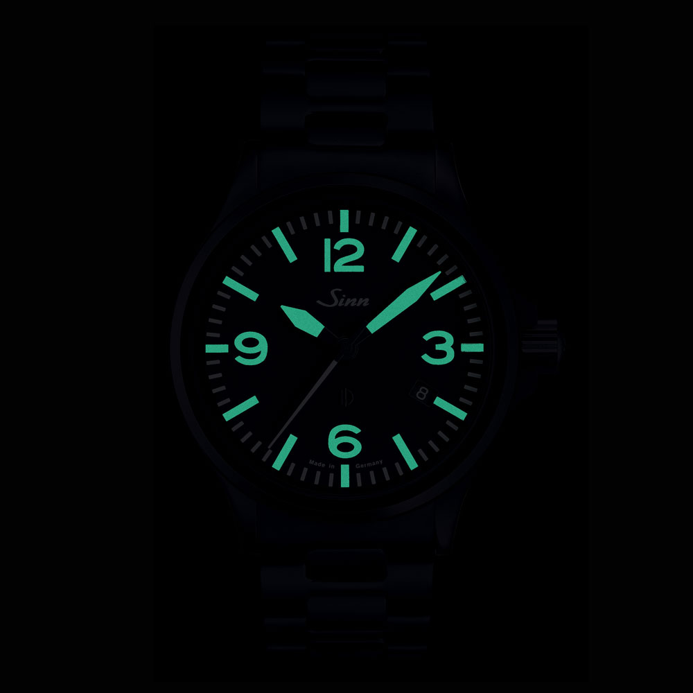 856.B.Sは、UTC(デュアルタイム)機能付きの856のUTC機能を廃した刻時に特化した新作856.BにDLCコーティングを施したモデルです。パイロットにとって最も重要な極限状態での視認性を確保するため、3・6・9・12のインデックスを強調したダイヤルデザインと、DLCコーティングでよりコックピットのイメージに近くなり、先鋭的で力強いイメージに、さらに精悍で重厚なイメージが加わりました。ジンを代表する3つのテクノロジー  ——  マグネチック・フィールド・プロテクション、Arドライテクノロジー、テギメント加工を備えた最強の腕時計です。