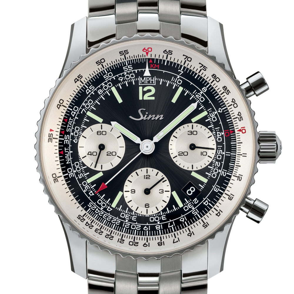 ジンが完全に再設計した新しい903シリーズの「903.St.II」は、サンレイ仕上げのブラックダイヤルにシルバー仕上げのカウンターとインナーベゼルを備えたシリーズ標準モデルです。