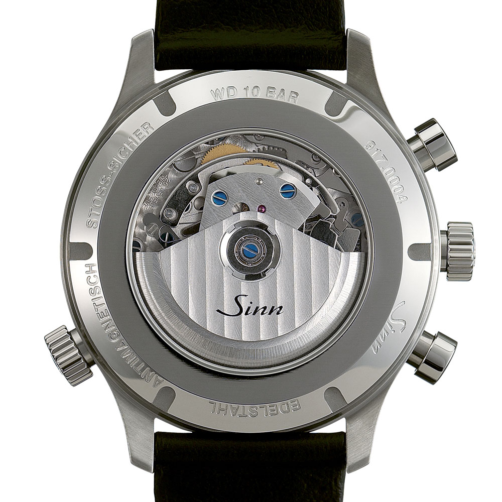 モデル917はクラシックな雰囲気を湛えたラリー・クロノグラフです。ラリーレースに必要な精密さと信頼性の高い機能を搭載しています。特徴的なのは正確な最終タイムを読み取るカウントダウンベゼルの操作性の高さや、使用感の向上とレース時の動作を阻害しないための逆リューズ、および最終15秒の重要なステージで残りの時間を喚起させるダイヤル外周の赤いインデックスなどです。クラシカルなデザインのダイヤルと無反射コーティングを施したサファイアガラスの風防は、ひと目でラリーにとって重要なすべての情報が読み取りやすいようになっており、いかなる用途ももちろんロードラリーにとって完璧に対応したモデルといえます。