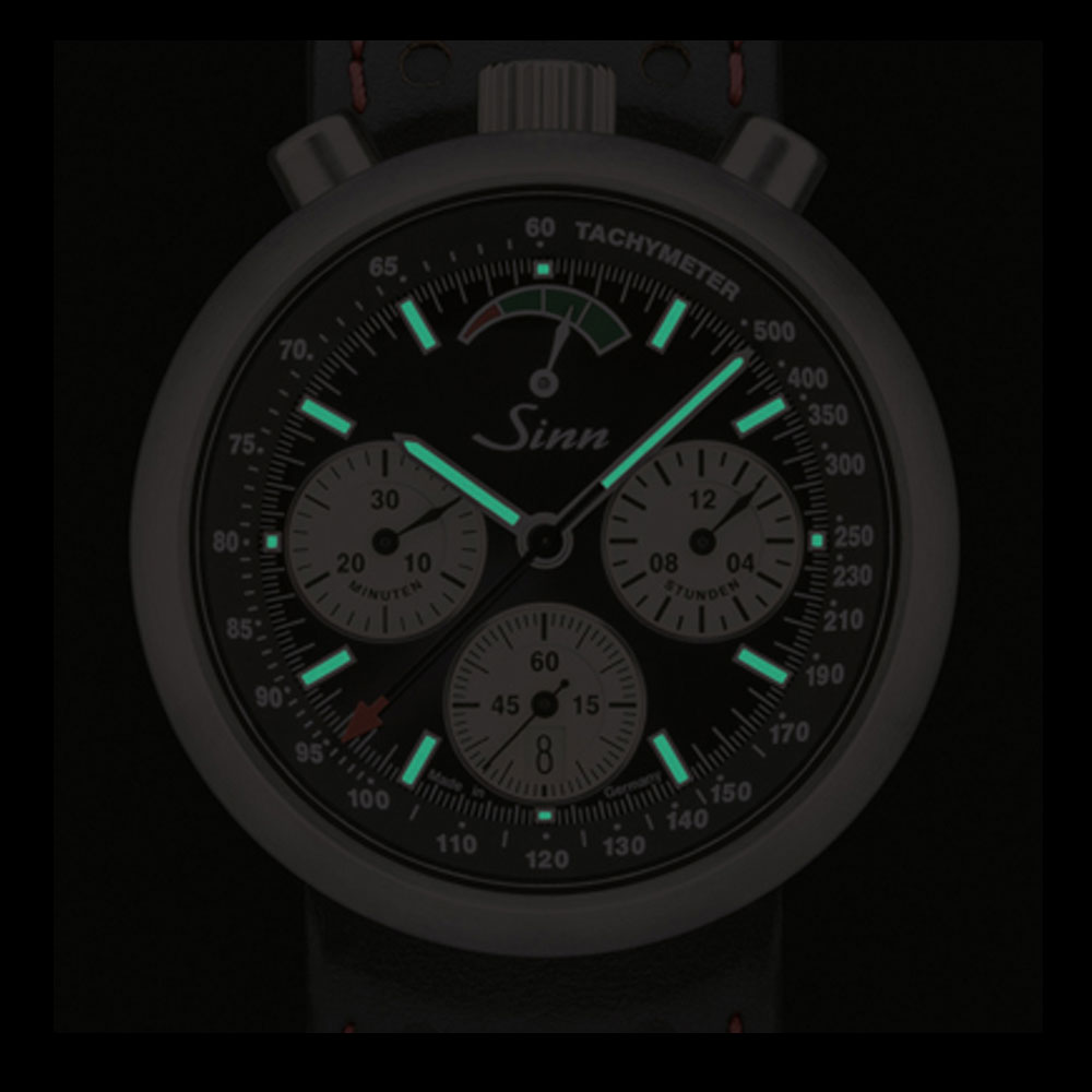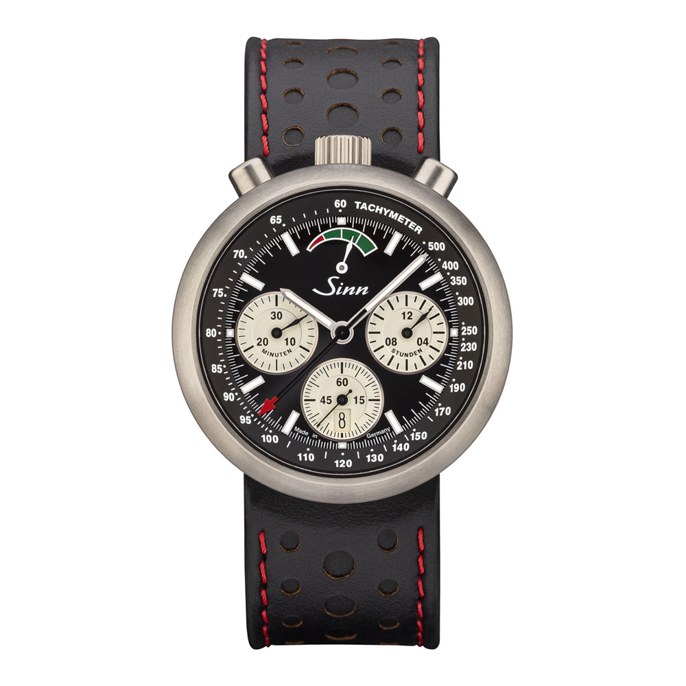 2020年、Sinn(ジン)の秋の新作。コレクションの中に久しぶりに加わったブルヘッドスタイルの際立ったリューズ配置を持った、チタン製レーシングクロノグラフです。世界限定300本。タキメーター表示や実用性の高いパワーリザーブ表示を搭載し、12時間計と30分積算計を備えたクロノグラフ機能で、精度の高い時間計測を可能にします。
