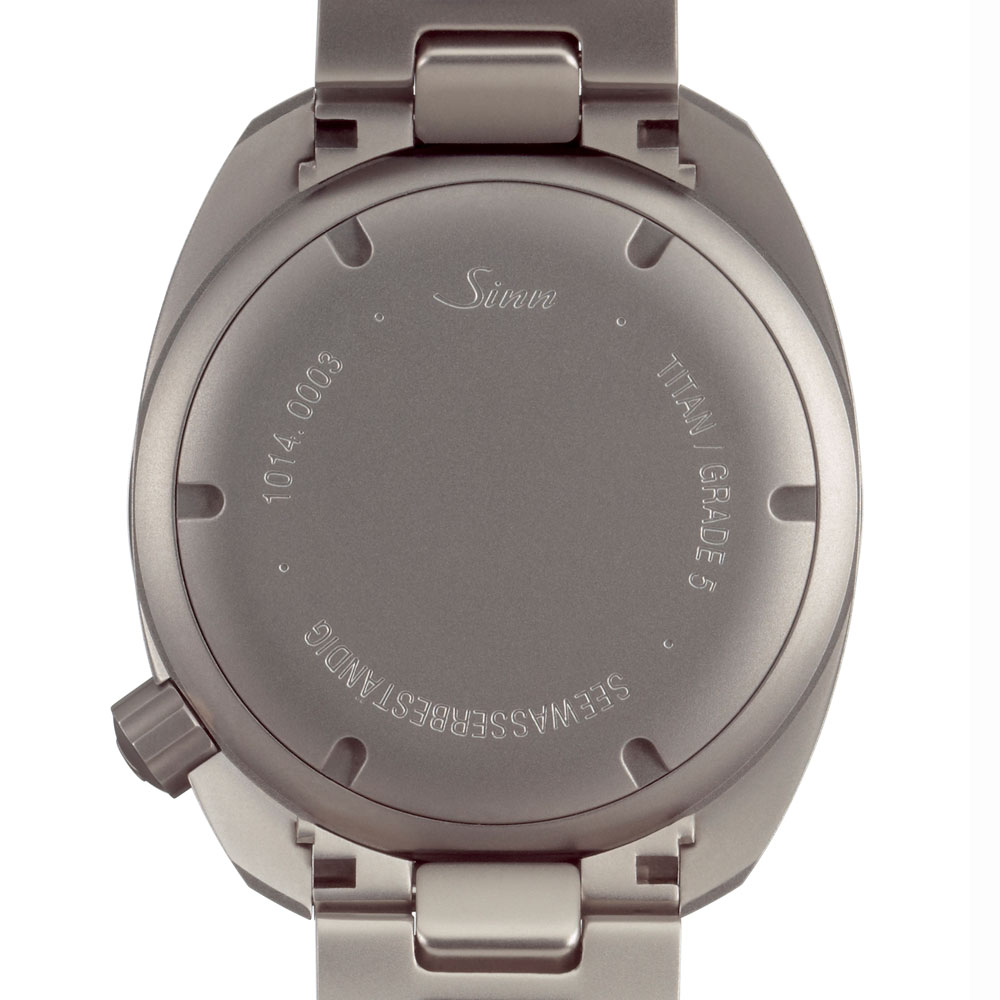 T1は、ジンの新たなミッションタイマーで、ベゼル構造における2つの要素が特徴です。ひとつはジン独自の特殊結合方式により、ネジで下部のリングに固定された回転ベゼルは不意の衝撃でも外れることがありません。もうひとつは衝撃などにより意図せずベゼルが回転しないための構造です。回転ベゼルは、ベゼルの2点を下に押し下げることで初めて回転させることができます。デザインにおいては、時分針のデザインを異なったものにすることでセットした時間の判読性を高めています。さらに、暗所や不利な状況下でセットした時間の読み取りがしやすいように、T1は分針と回転ベゼル上の三角のポイントの夜光の色を変えています。暗所では分のインデックスと時針がブルーに、分針と回転ベゼル上の三角のポイントが緑色に発光します。