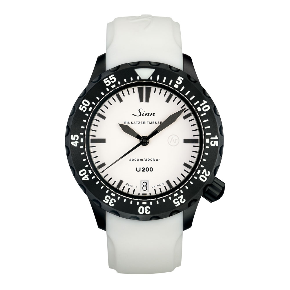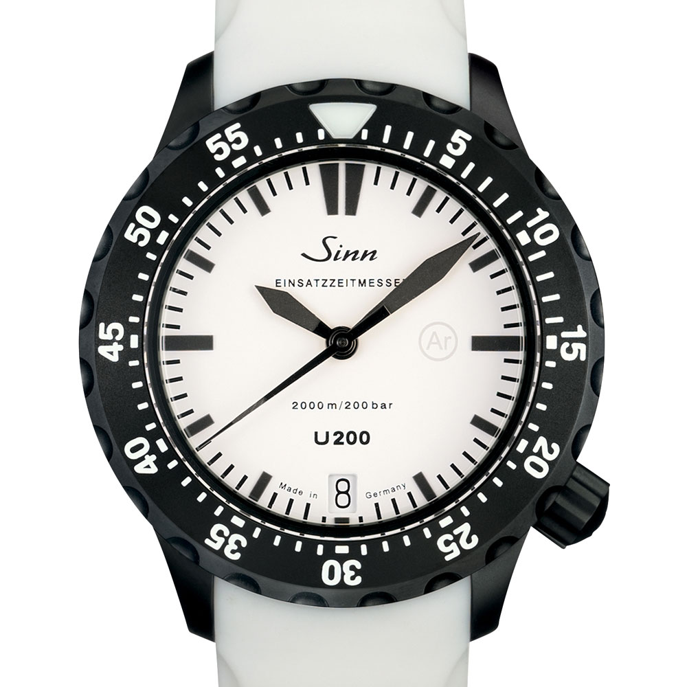 ダイバーズウォッチは、確実性と質実剛健であるという観点から高いデザイン性や構造、材質であることが要求されます。このモデルは、これらの点ですでにダイバーたちの高い信頼性を獲得しているUシリーズのユニセックスサイズモデルU200の限定ダイヤルです。クリーンな白が鮮烈な印象を与え充実した機能も備えるU200.Wの時計ケースには、従来のUシリーズ同様のドイツの最新鋭潜水艦Uボートの鋼鉄Uボート・スチールを使用しています。このUボート・スチールにさらにテギメント加工とブラックハードコーティングを施すことで通常のステンレススチールの約5倍以上もの硬度で優れた耐傷性を実現。暗所で発行するブラックスーパールミノバを施したインデックスと針、黒のフォールディングバックル付きホワイト・シリコンストラップで、ホワイトのベースとブラックのアクセントで従来モデルとはまったく趣の異なるデザインとなりました。 ゲルマニア・ロイドによって潜水深度2,000mまでの耐圧性能をクリア。地上、海中問わずどのような状況にも対応できるハイスペックなダイバーズウォッチです。