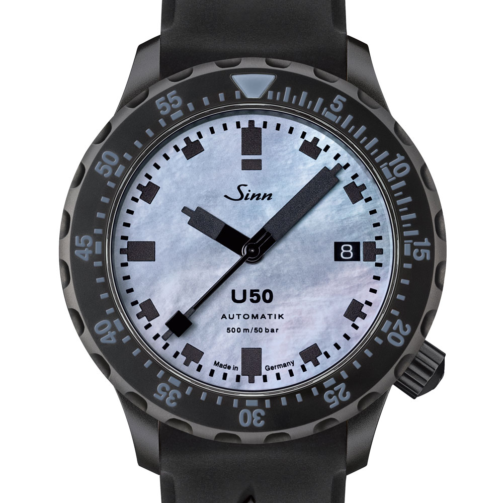 ケースバックに全世界500本限定のシリアル番号を刻んだU50.S.Perlmutt.Sは、光を反射して玉虫色に輝くブラック・マザー・オブ・パールのダイヤルが特徴のダイバーズウォッチです。マザー・オブ・パールとダイバーズウォッチの組み合わせは、水という要素で結ばれていることからごく自然なことと言えますが、マザー・オブ・パールは天然のものであるためダイヤルは2つとして同じものはなく、非常にレアなモデルとも言えます。