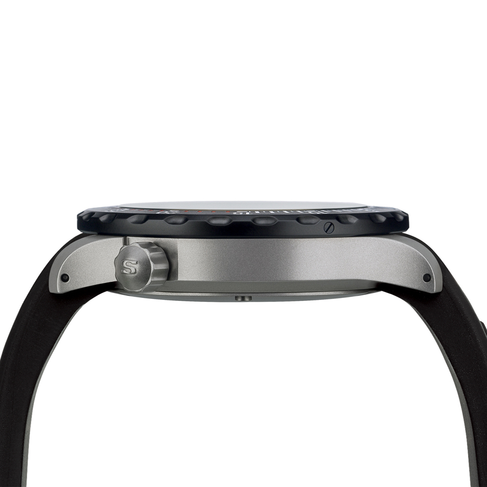 U50.HYDROシリーズのこの3つの時計はすべてが本質を追求したディスプレイを備えたデザインに重点を置いています。日常使いに最適でもあり、最も過酷な条件下でも耐えられるよう特別な素材を使用しています。ケースとリューズには、高強度で海水耐性のあるドイツ潜水艦Uボート・スチールを採用、その素材は高い強度と卓越した非磁性が特徴です。ダイビング愛好家にとっての際立つもうひとつの利点は、その卓越した海水耐性です。強い衝撃でも外れることのない特殊結合方式の回転ベゼルを採用しています。