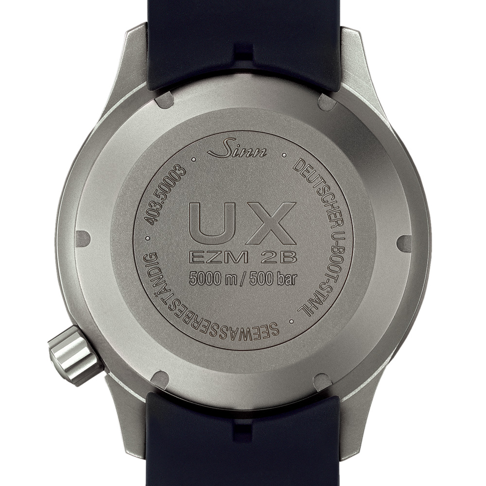Uシリーズの時計ケースには、ドイツの潜水艦Uボートの鋼鉄を使用しています。このUボート・スチールは海水耐性が優れているだけでなく、残留磁気を帯びずに反磁気性があり、またひび割れに対する耐性が高いといった特徴があります。さらにジン社独自のテギメント加工を施した回転ベゼルの硬度をジンのモデルの中でも最高の1500ビッカースまで上げることに成功し、特殊結合方法で固定された回転ベゼルは強い衝撃でもはずれることはありません。モデルUXは、ジン社独自のハイドロ・テクノロジーで時計ケースに特殊なオイルを封入することにより、あらゆる角度からの視認性が高く、驚異の5,000mという高い防水性能を誇ります。DNVによりマイナス20℃からプラス60℃までの領域で作動安定性が確認されています。