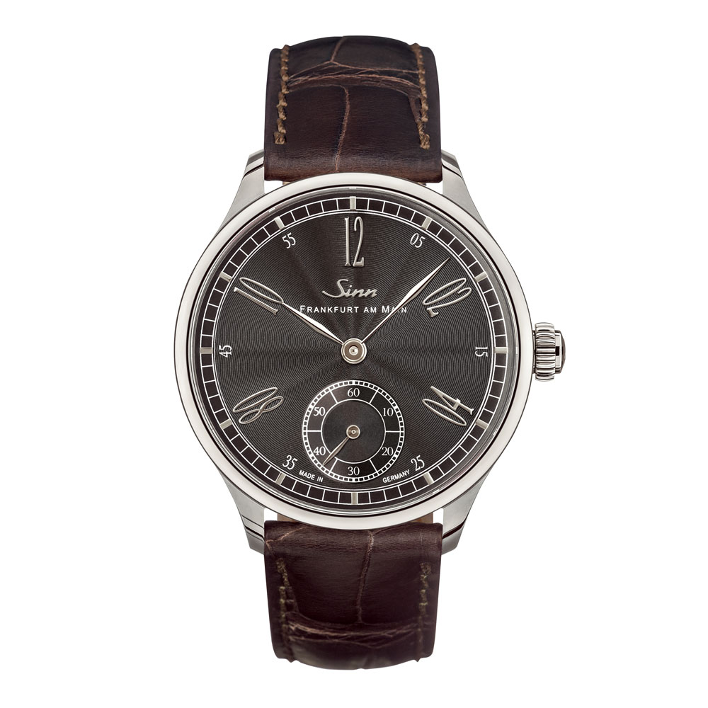 この時計に搭載しているドイツ製手巻キャリバーUWD 33.1は、特殊構造のバレルブリッジによる片側のみで固定された香箱を備えています。動作調整はテンプ機構の偏心ネジを移動させることによって行います。さらにスワンネックの調速機構を使って、微調整と動作均整の調整がスムーズに行われます。ムーブメントのすべての部品は精密な仕上げを施されており、その美しさも特筆すべき点です。 美しいフォルムのケースは18Kホワイトゴールド製で、ギョーシェ彫りの加工が施されたアンスラサイトの文字盤にはアプライドインデックスが採用されました。飛びアラビア数字のインデックスはドイツの伝統的な掛け時計や置時計のスタイルと同様です。