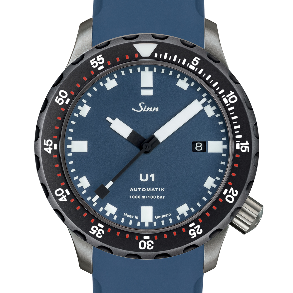 U1.B.SDRは、ドイツ海軍の212クラス非原子力潜水艦の外殻のために開発された特殊鋼Uボート・スチールのケースに、ブラック・ハード・コーティングを施した回転ベゼルとブルーダイヤルを備えた、1,000mの防水性能を持つプロフェッショナルダイバーズウォッチです。Uボート・スチールは海水耐性が優れているだけでなく、残留磁気を帯びずに反磁気性があり、ひび割れに対する耐性が高いといった特徴があります。また、回転ベゼルはセラミック以上の高硬度を実現したブラック・ハード・コーティングを施し特殊結合方式により固定されているため強い衝撃でも外れることがありません。ブルーダイヤルは真っ白で特徴的な形のインデックスとボリューム感のある針を備え、同色のシリコンストラップが全体的なブルーのイメージをさらに強調しています。